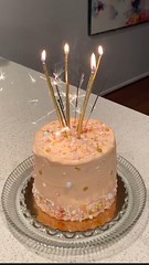 Trying to light 3 sparklers simultaneously so that they ignite at exactly the same time, placing them quickly onto the cake, and grabbing your camera so you can take some pics.